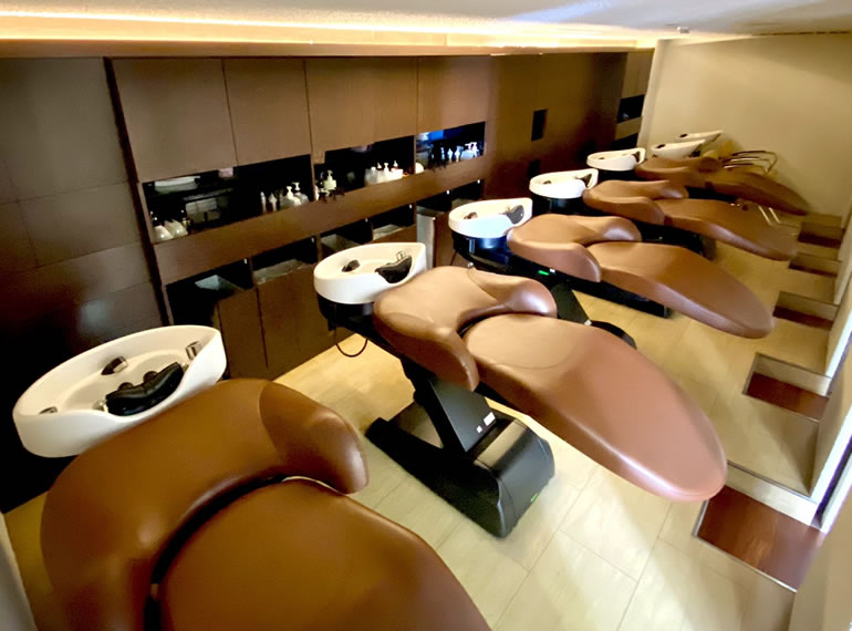 エルサフィロのシャンプー&ブローは、お客様にもっとも好評なメニューの一つ。照明を落としたシャンプーブースは人目につかないように専用のスペースをご用意。本格リラクゼーションスパ並みのサービスが、カットに標準メニューとして付いています。